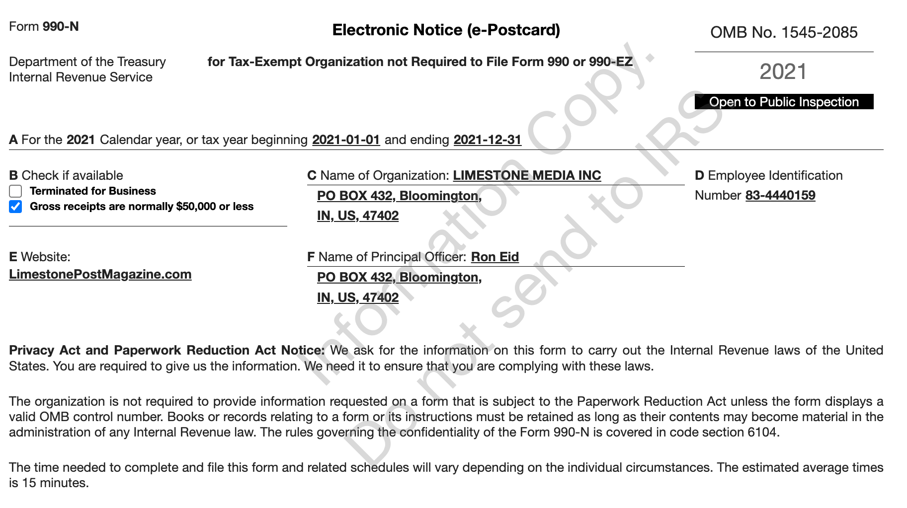 As a 501(c)(3), Limestone Media Inc. (our official name) accepts gifts, grants, and sponsorships from individuals, companies, and other organizations in any amount for the general support of Limestone Post’s activities.