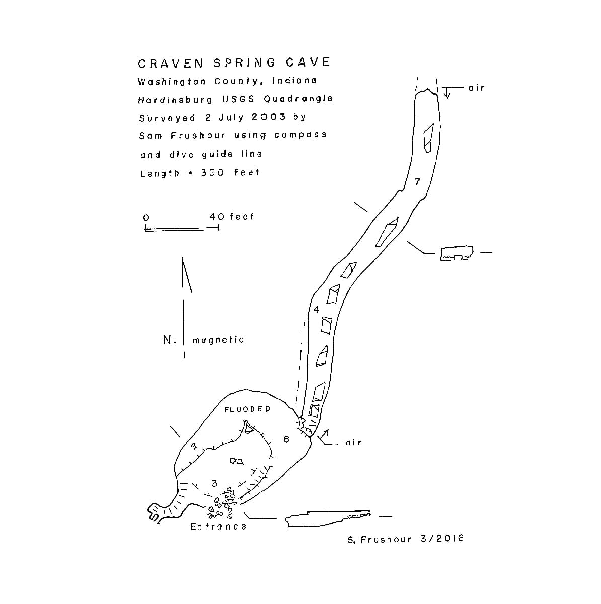 Frushour's 2003 map of Craven Spring Cave in Washington County. | Courtesy image