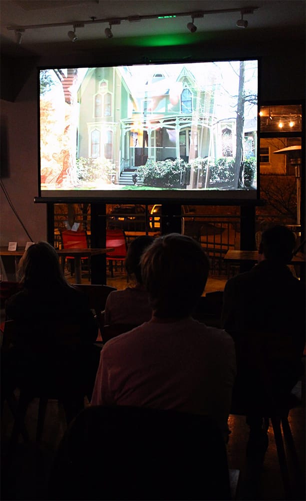 Here, Cicada Cinema hosts their monthly Instant Gratification Movie Challenge at Hopscotch Coffee. The challenge asks creators to collectively choose a theme, then they are then allowed one month to create short films based on that theme. | Photo by Nicole McPheeters