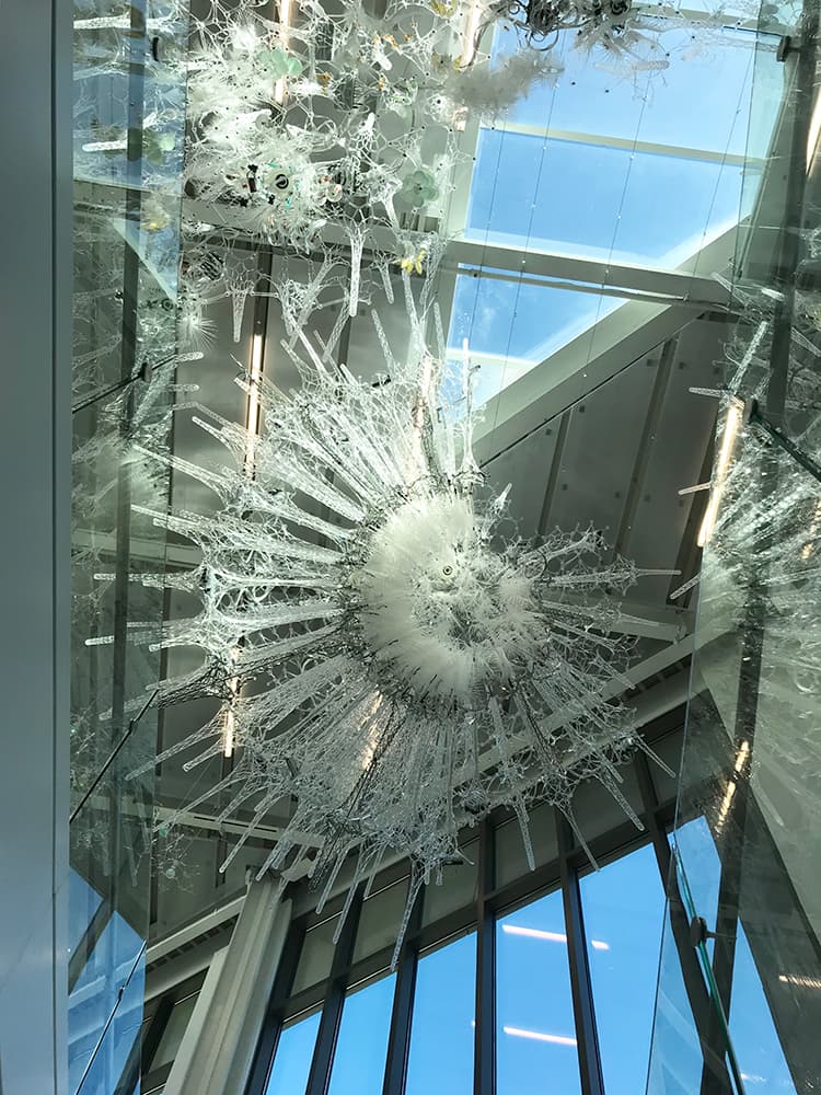 In today’s environment of the Internet of Things, a.k.a. IoT (pronounced eye-oh-tee), students will gain valuable experience creating and coding devices to interact with Amatria. The artist has even provided software kits to help students connect with the data collected by the sculpture. This work of art serves as an experimental technology lab for students learning to build the next generation of IoT devices, from smart cars to medical interfaces. Beesley asks, “What if buildings could know us, talk to us, and even care about us?”