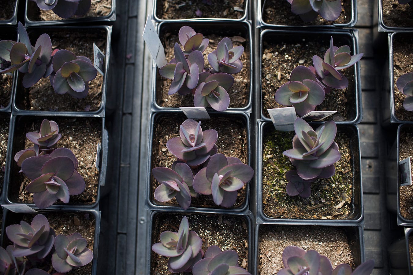 Blue pearl sedum, a type of succulent, sits in Linnea’s greenhouse. Overall, succulents and carnivorous plants are the biggest seller, but perennials take the number one spot in April and May. Linnea spends March timing and prepping plants to make sure she has enough full flats to last her through May. “You realize the changes that the plants have to go through to survive the winter,” Linnea says.