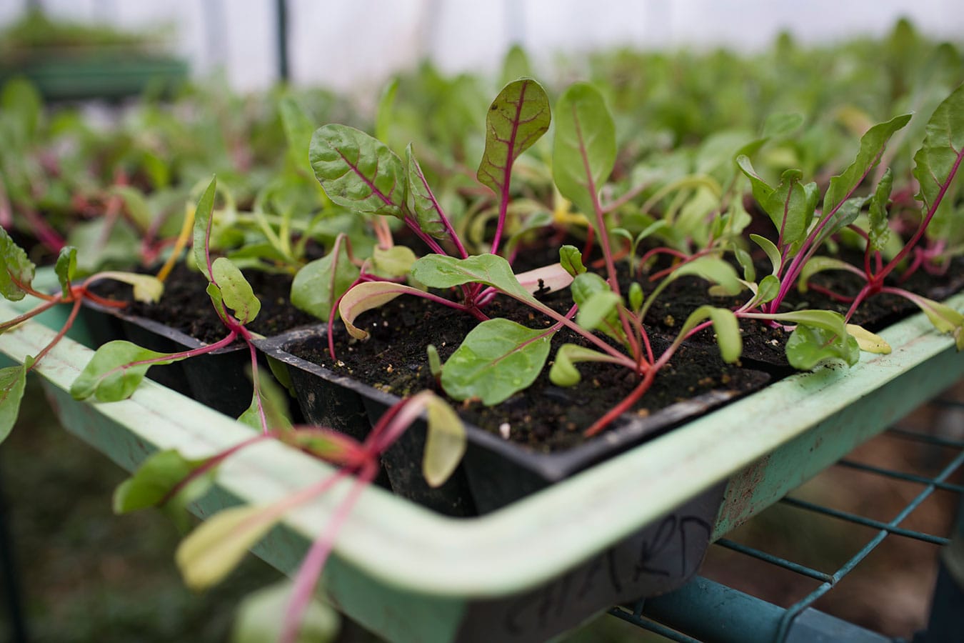 Chard grows in one of Living Roots’s greenhouses. Three greenhouses and a couple of barns are located on the 75-acre sustainable farm.