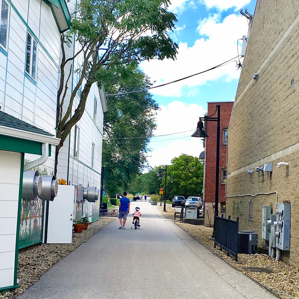 Trains used to rumble through the center of town. Click by clack, the sounds of the rattling boxcars and tankers echoed off the walls of the bustling warehouses and switchyard buildings. The tracks led engines to a world beyond the hills and horizon, and in the silence of the fading trains, the beams of wood and steel were pulled away behind them like worn stitches across a colorful scar. Now, the sounds of Bloomington joy spread over the asphalt from one end of the beautiful B-Line Trail to the other.